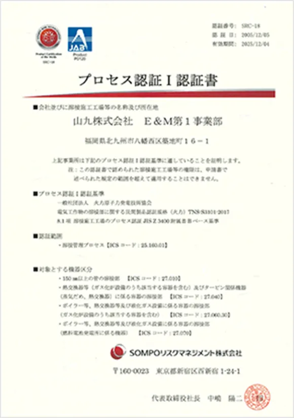 ※ 電気工作物の溶接部に関する民間製品認証規格(火力)TNS-S3101-2017(一般社団法人火力原子力発電技術協会発行)