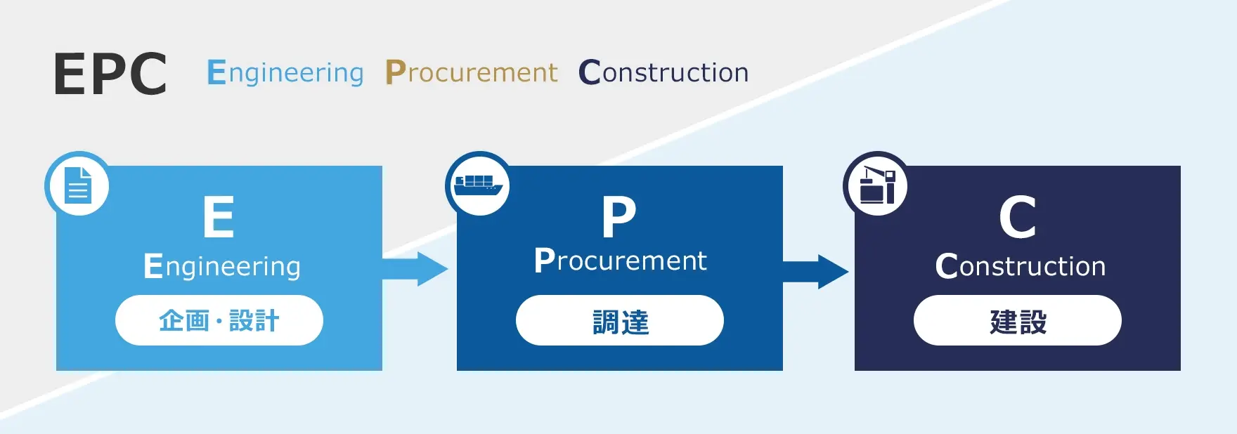 山九グループは、国内外で金属、石油、石油化学、エネルギーといった超大型プラントにおける大型プロジェクトのマネジメントを実行しています。プロジェクトの多くはプラント建設における3つのフェーズE(Engineering:設計)、P(Procurement:調達)、C(Construnction:建設)の全てを一括受注するケースや、EPCをそれぞれ個別に請け負うケースなど様々です。更に、EPCの前段階からお客様と密接に関わり、FS(Feasibility