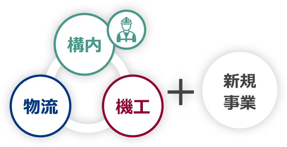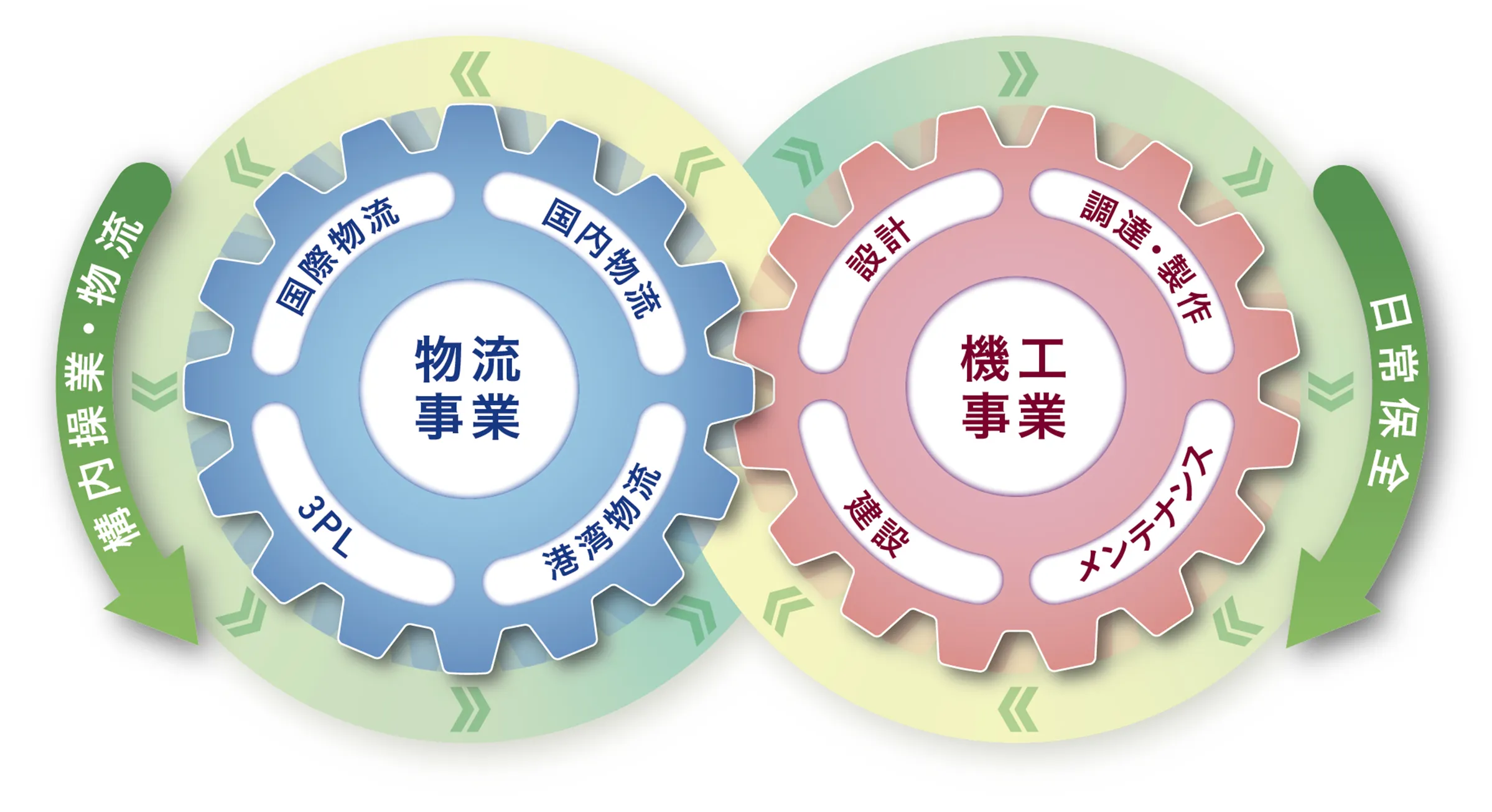 物流では「構内」、機工においては「メンテナンス」という、顧客企業と物理的、心理的距離感の 近い立場を確保することで、お客様の多様なニーズを捉え、ワンストップソリューションで応じられる事が当社の強みです。